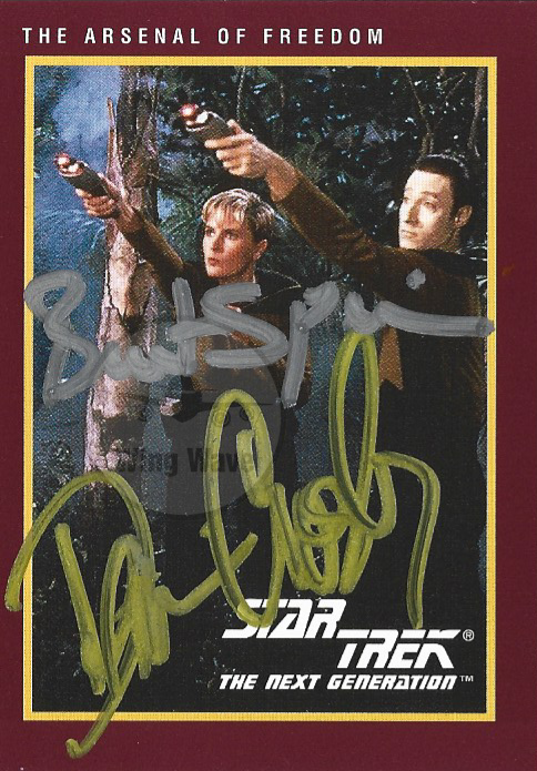 Dual autograph signed by Denise Crosby (Tasha Yar) and Brent Spiner (Data)