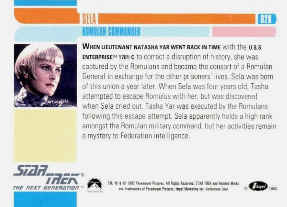Card #028 featuring Sela, Romulan Commander (Denise Crosby)