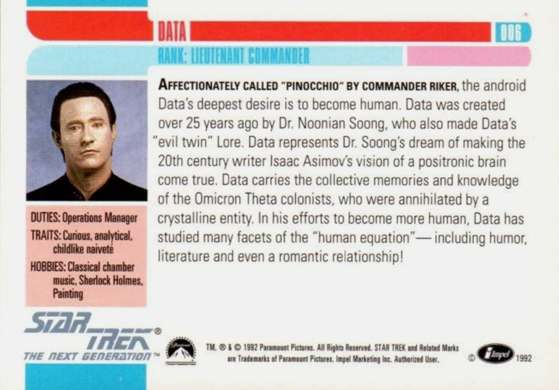 • Card #006 featuring Lt. Commander Data (Brent Spiner)