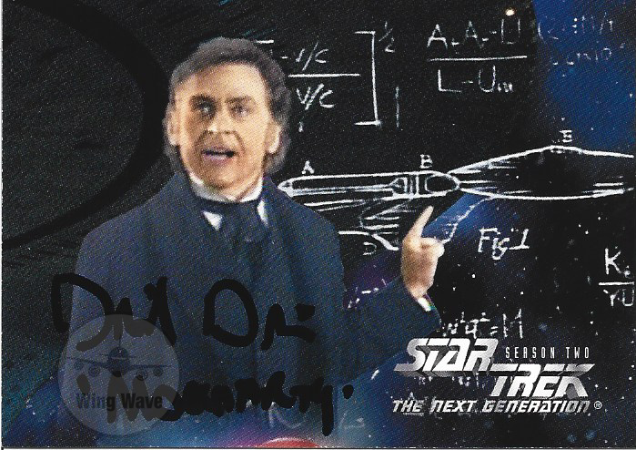 This rare signed card captures Davis in character against a backdrop of equations and starship schematics, perfectly embodying Moriarty’s blend of intellect and menace. A standout piece for fans of both Star Trek and classic literature, this card is a must-have for collectors who appreciate the fusion of sci-fi and Sherlock Holmes lore.