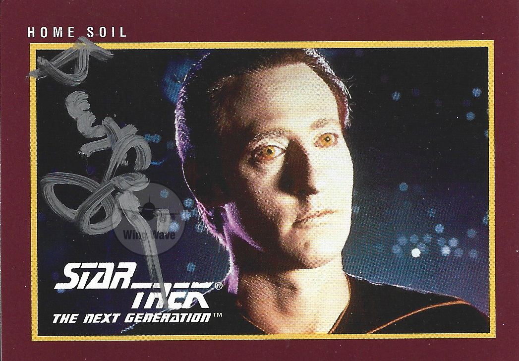 From the early days of The Next Generation, “Home Soil” highlights Data’s insatiable curiosity about life itself. Brent Spiner’s signature on this classic card embodies the android’s defining pursuit—to understand what it means to be alive. A piece of Trek history for fans of both science and soul.