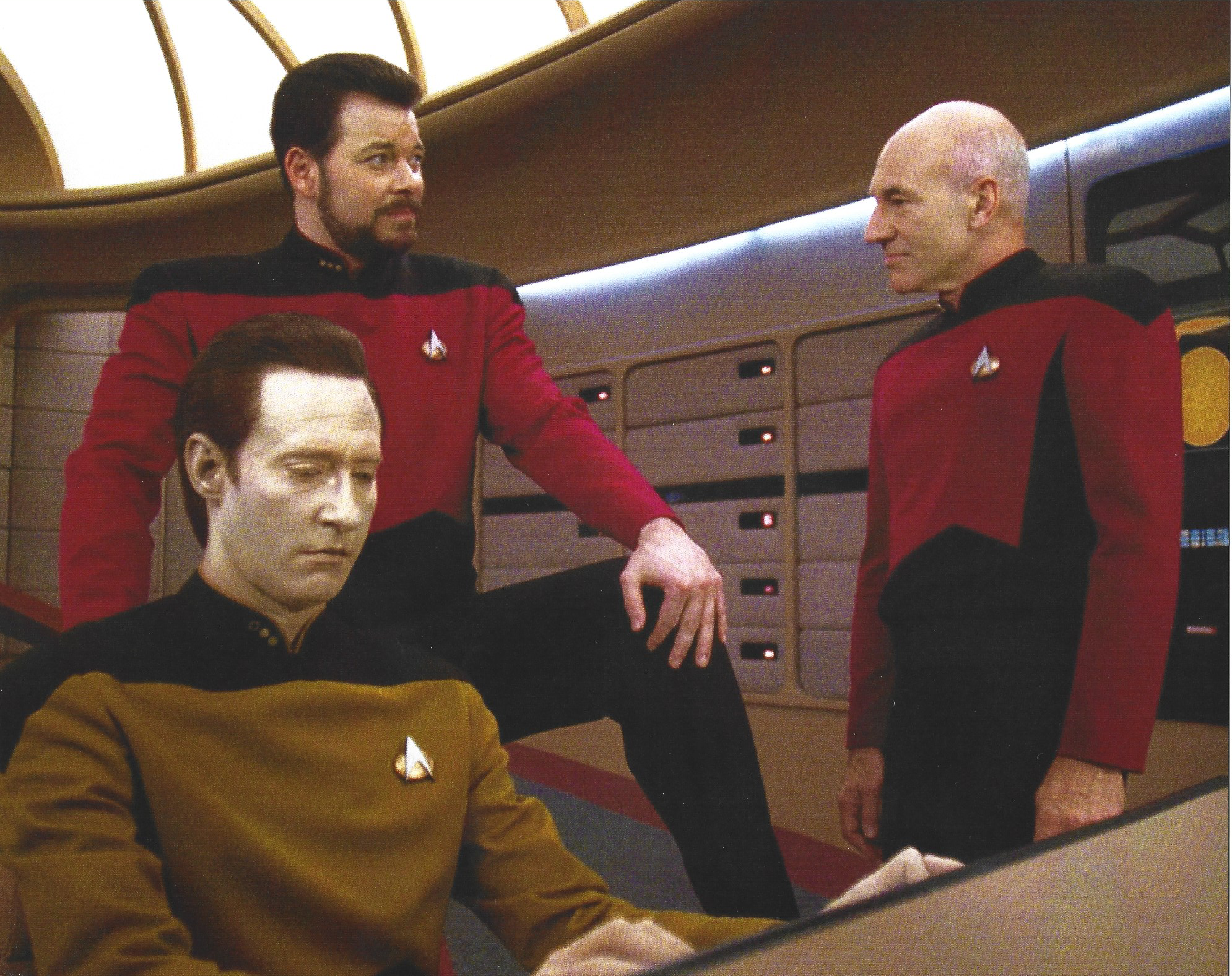 Authentic 8×10 photo of Data, Riker, and Picard on the bridge
